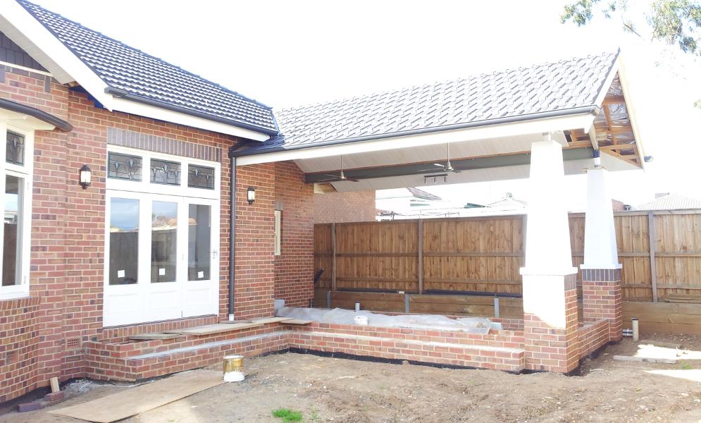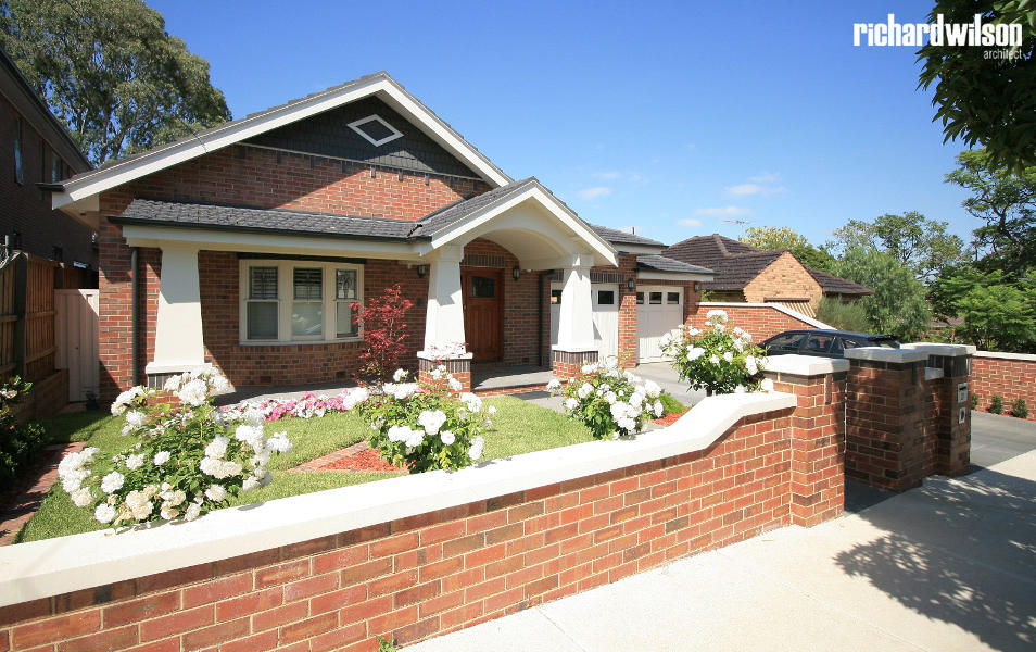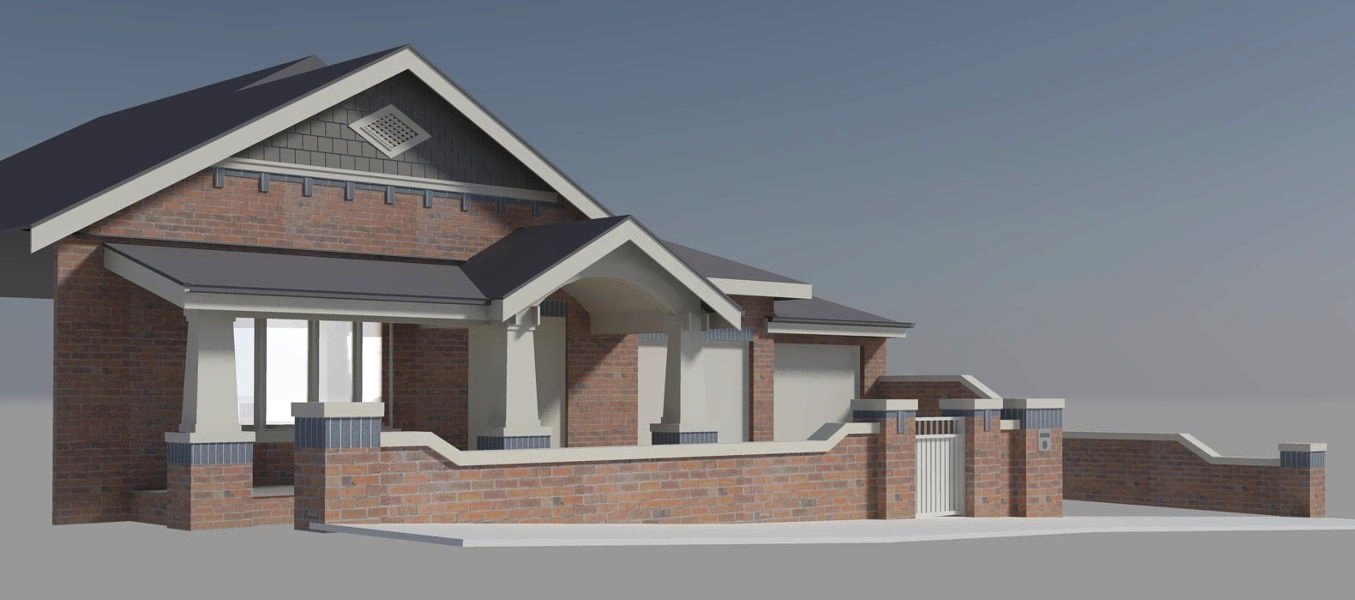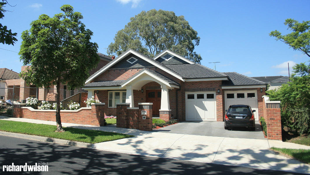 The Essendon Residence no.2 was a new brick residence in Essendon, Victoria. The brief included four bedrooms, study, kitchen, dining, lounge, media room/playroom, laundry, two car garage, and more, all in a single storey. The style of the house was meant to be period, but not necessarily any particular period. However, the owners had collected several images that included features from American Arts & Crafts houses.