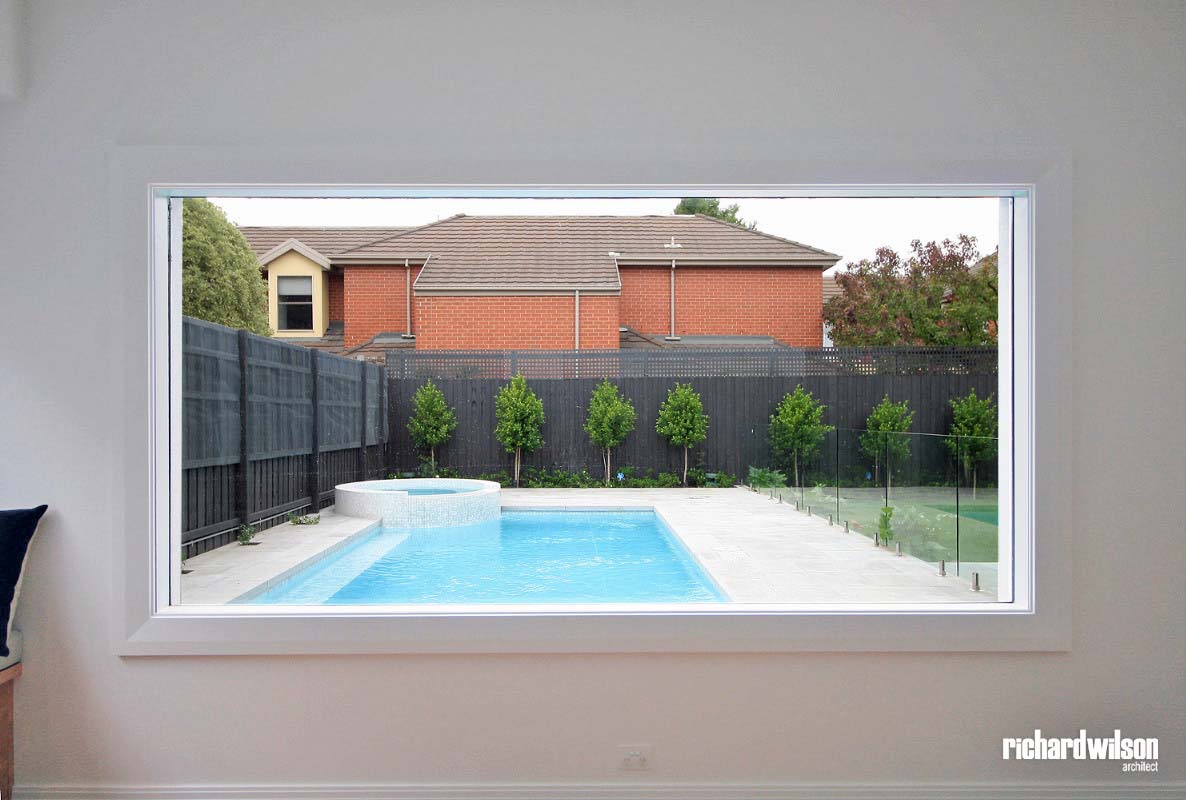 Since a relatively large house had to fit on a medium block, the floor plans had to be compact and efficient. This principally meant keeping the circulation spaces to a minimum so the living areas could be generous. Proper zoning within the house helps with this. The formal private areas and study were placed on the front of the house, separated from the noisier areas of the home. The main family areas were spread across the rear of the house in an open plan. The dining and kitchen have floor to ceiling sliding doors to maximise the light, views, and access to the alfresco and rear yard. The lounge has smaller windows to create a cozier feel, although it has an expansive picture window in the rear wall which literally frames a view to the pool. The private bedrooms and rumpus were placed on the first floor. The garage, gym, and media room, where natural light is less critical, are in the basement.