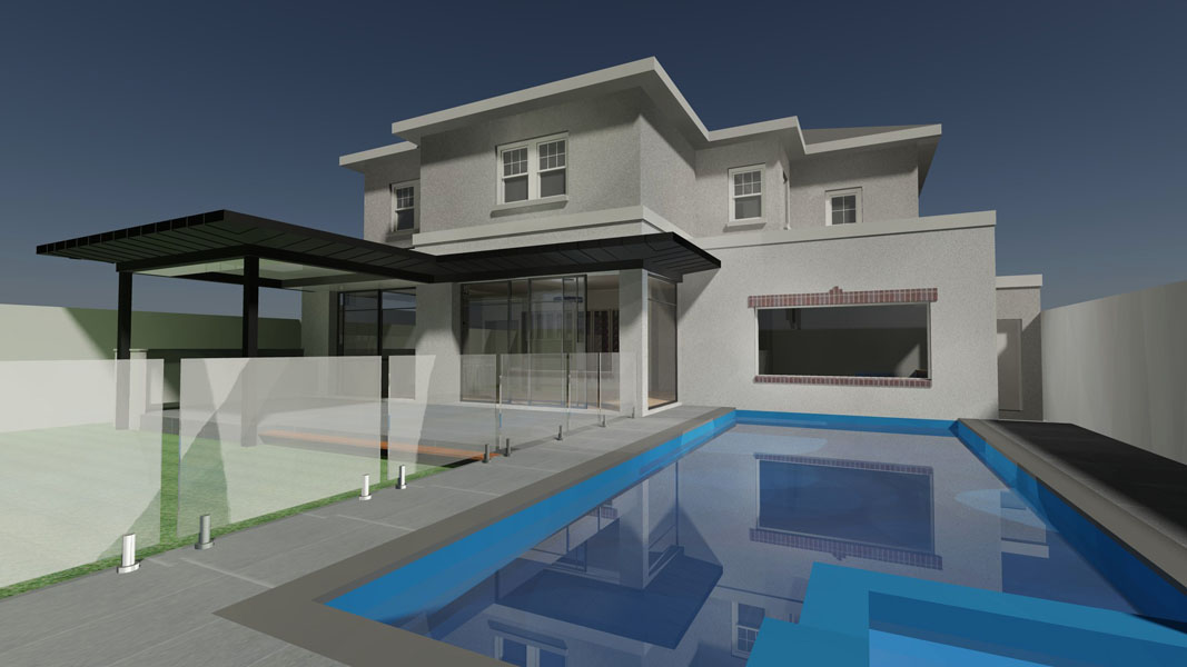 The Kew Residence was a new two-storey residence in Kew, Victoria. It is located at the end of a quiet court where all of the existing houses are in formal, traditional styles. Since no other new construction had yet taken place, one goal was to maintain this character without creating a reproduction house. The brief required the usual living and support areas in addition to a formal sitting room, home office, media room, rumpus, gym, basement garage, and a lift. This was all to fit on a mid-size block whilst retaining enough space in the rear yard for a swimming pool and entertaining area.